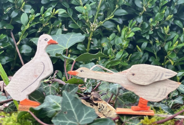Pomona Wooden Toys – a devoted couple of geese in conversation.